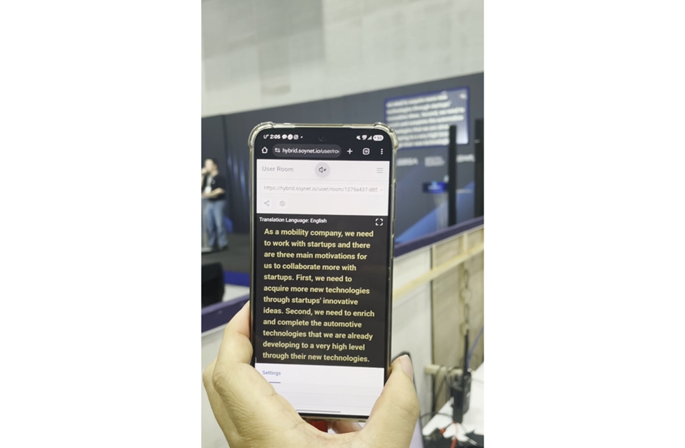 한편, 소이넷은 이번 행사에서 온프레미스 동시통역 서버 ‘다바르엘(DABAR-L)’을 함께 전시해 현장 방문객들의 큰 관심을 받았다. ‘다바르엘’은 인터넷 연결 없이도 사용할 수 있는 국내 최초 스피치 투 스피치(S2S) 온프레미스 솔루션으로, 음성인식(STT), AI 번역, 음성합성(TTS)이 스트리밍 방식으로 실시간 처리된다.