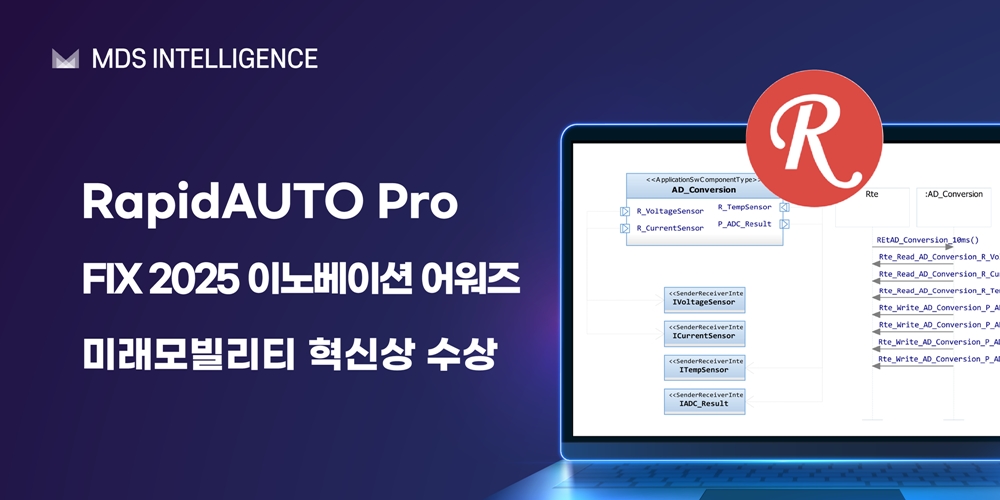 AI 임베디드 솔루션 전문기업 MDS테크([086960])의 핵심 계열사 MDS인텔리전스(대표 지창건, 이정승)는 자사 솔루션 ‘래피드오토 프로(RapidAUTO Pro)’로 FIX 2025 이노베이션 어워즈에서 미래모빌리티 분야 혁신상을 수상했다고 24일 밝혔다.