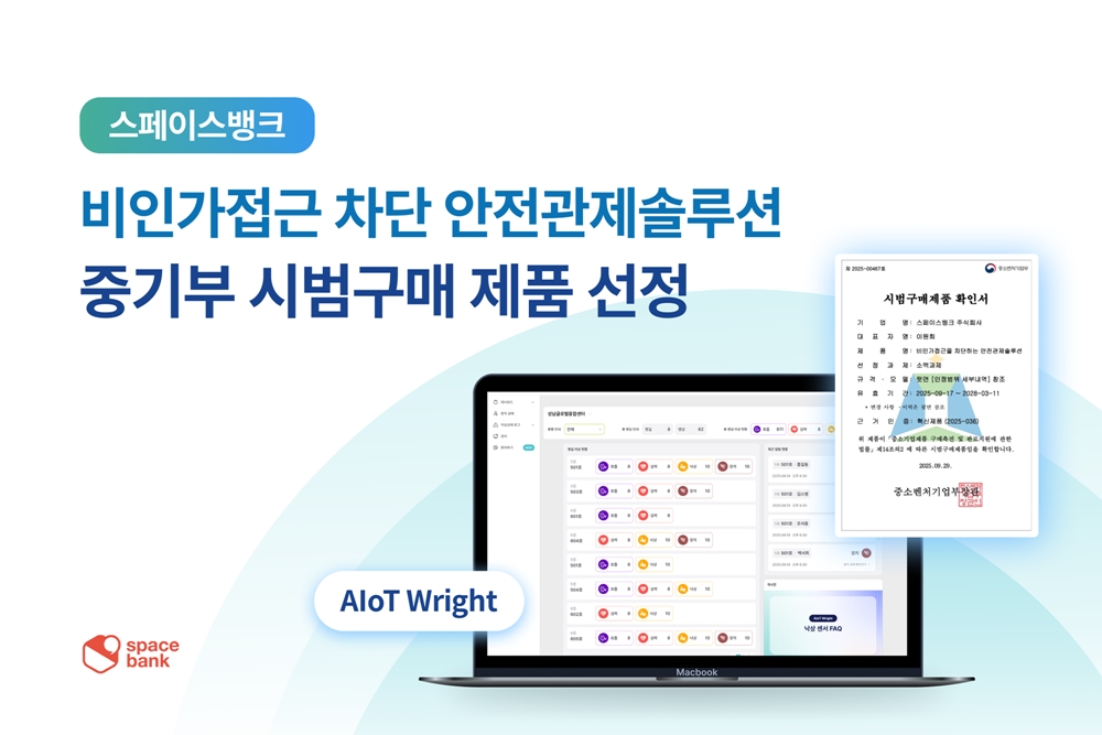 스페이스뱅크(대표 이원희)가 자체 개발한 AI 안전관제 솔루션 ‘AIoT Wright-G’가 중소벤처기업부가 주관하는 기술개발제품 시범구매 사업에 선정됐다. 이번 선정으로 스페이스뱅크는 공공시장 진출의 발판을 마련하며, 혁신 기술을 바탕으로 한 새로운 도약을 준비하고 있다.
