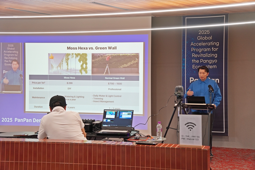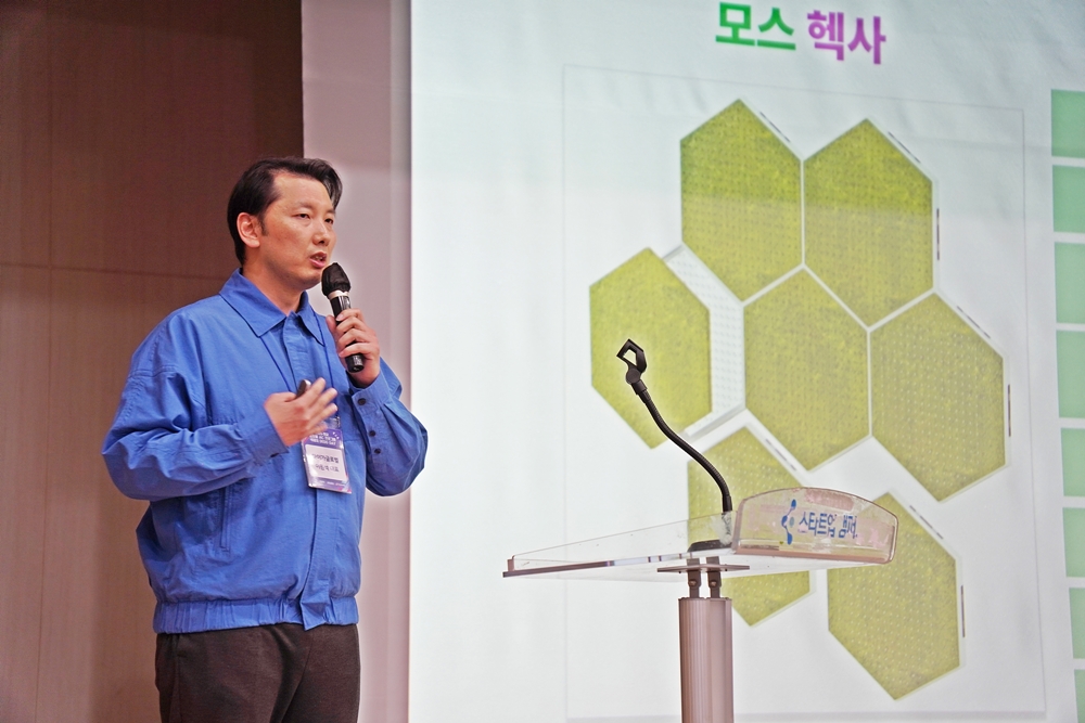 이원석 ㈜타이가글로벌 대표가 이끼 기반의 실내 생활 방식 혁신 기구를 발표하고 있다.