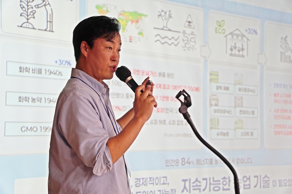 홍성욱 ㈜딥벨로 대표가 농업 생산성을 높이는 지속가능한 종업 기술 기반 수 처리 장치를 발표하고 있다.