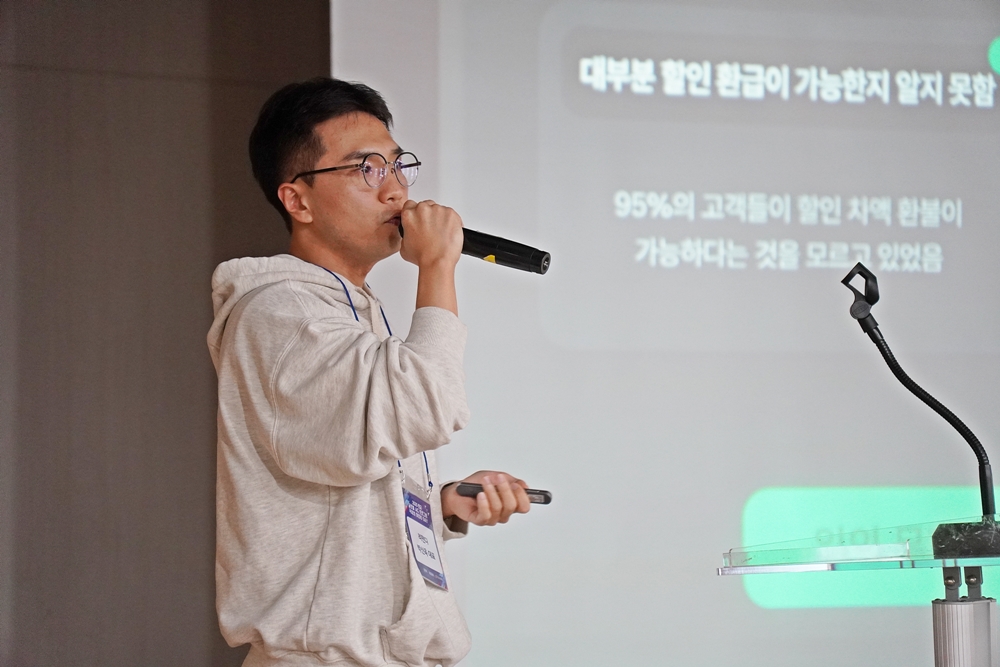 박신욱 ㈜리펀디 대표가 글로벌 해외 구매 사업자를 위한 환급 자동화 솔루션을 발표하고 있다.