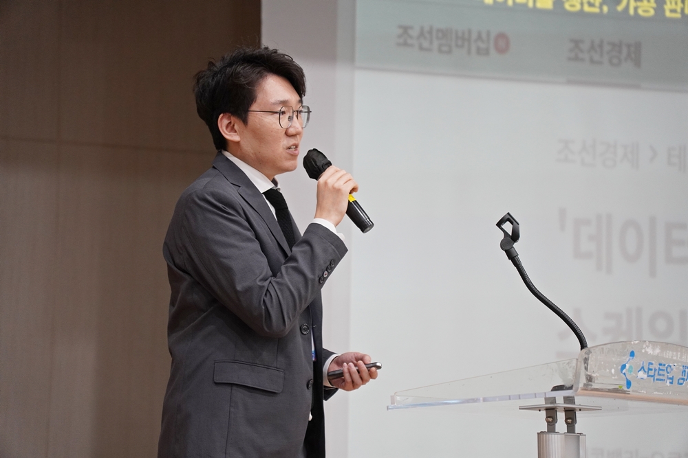 윤주홍 ㈜폴리곰 대표가 고품질 화보 이미지와 영상, 3D 콘텐츠 제작 솔루션을 발표하고 있다.