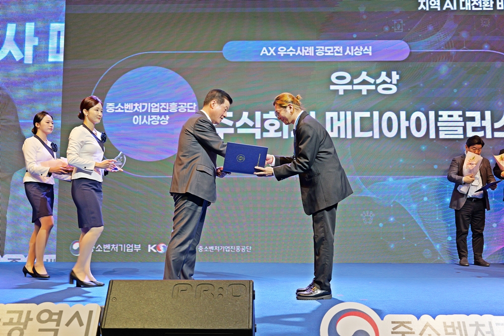 AI 기반 임상시험 혁신기업 메디아이플러스(대표 정지희)가 지난 19일 창원컨벤션센터에서 열린 ‘중소기업 AI 전환 우수사례 공모전’ 시상식에서 우수상을 수상했다. 이번 공모전은 AI 기술을 도입해 실제 성과를 창출한 중소기업 및 소상공인을 대상으로 진행됐으며, 메디아이플러스의 수상은 헬스케어 산업의 디지털 혁신과 글로벌 경쟁력 강화에 기여한 공로를 인정받은 결과이다.