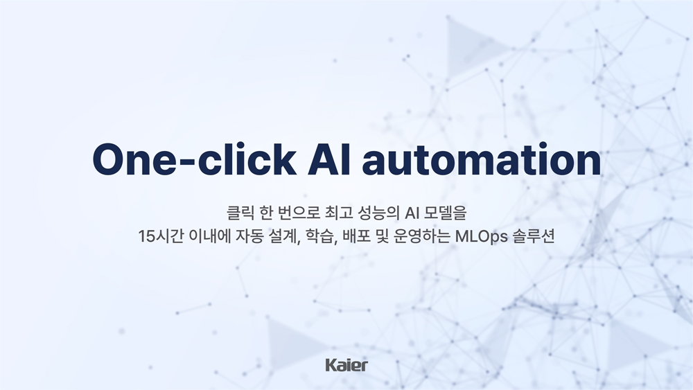 카이어(Kaier, 대표 이교혁)는 클릭 한 번으로 최적의 AI 모델을 자동 학습시키는 one-click AI automation MLOps 솔루션을 개발·공급하는 기업이다. AI 전문가를 따로 투입하기 어려운 산업 현장에서 현장 전문가가 직접 데이터를 활용해 AI 모델을 만들 수 있도록 돕는 것이 카이어가 지향하는 핵심 가치다. 카이어는 이를 통해 산업 전반의 AI 기술 전환 속도를 근본적으로 끌어올리겠다는 목표를 세우고 있다.