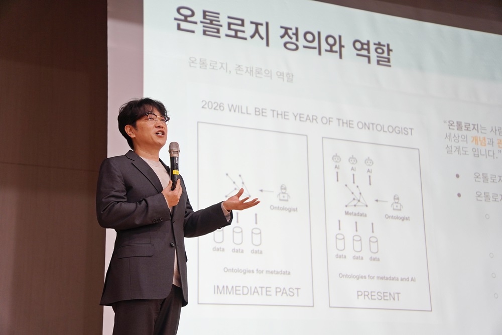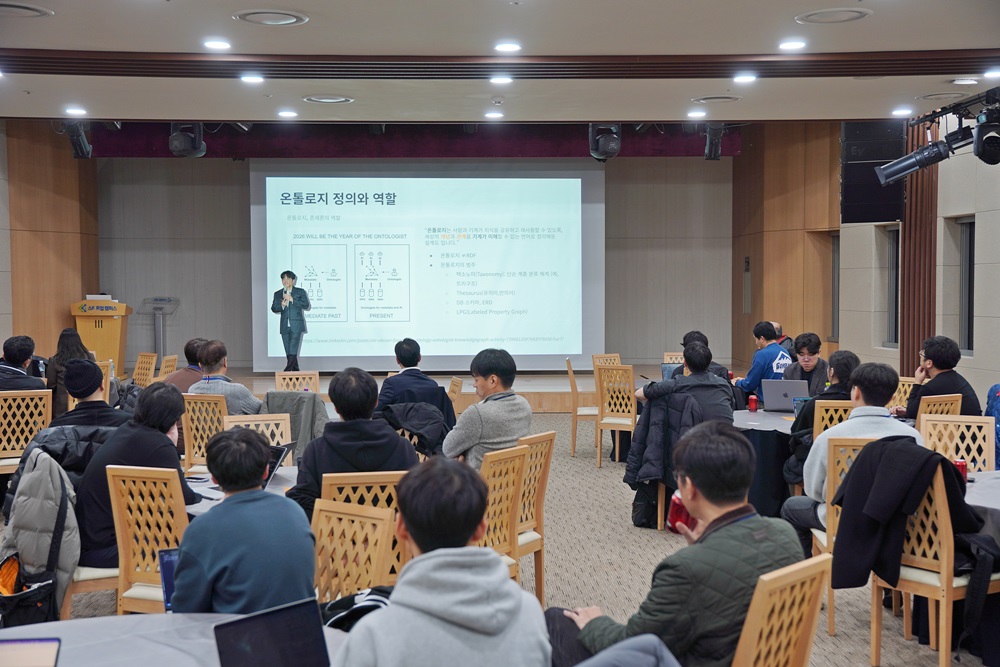2부에서 김정석 연사는 온톨로지를 기반으로 한 AI 전환 전략을 주제로 온톨로지의 역할과 지식그래프 관점에서의 구조화 방식, 지식을 구축하는 과정과 확장 전략 등을 중심으로 발표를 이어갔다. 3부에서는 ‘반복에서 축적으로’를 주제로 개인과 조직의 실행과 학습이 축적되는 방식에 대한 메시지를 공유하며 세미나를 마무리했다. 마지막 네트워킹 세션에서는 오프라인 참가자들이 자유롭게 교류하며 실무 경험과 관심 주제를 나눴다.