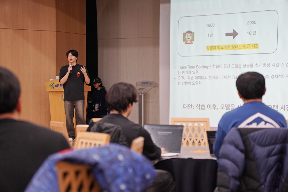 강화학습과 관련해 손 연사는 풀이 과정을 정답처럼 외우게 하는 방식과 달리, 검증 가능한 정답 신호를 기반으로 모델이 스스로 풀이를 탐색하도록 학습시키는 접근을 핵심으로 제시했다. 다만 이런 학습이 성과를 내려면 ‘찍어서 맞히기’가 어려운 고난도 문제가 필요하다며, 좋은 문제를 확보하고 설계하는 일이 경쟁력으로 떠오르고 있다고 덧붙였다. 또 모델의 규모가 작거나 충분히 똑똑하지 않은 구간에서는 강화학습보다 지도 미세조정(SFT) 등 파인튜닝이 여전히 폭넓게 활용된다는 점도 함께 짚었다.
