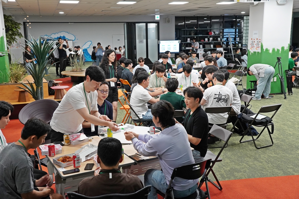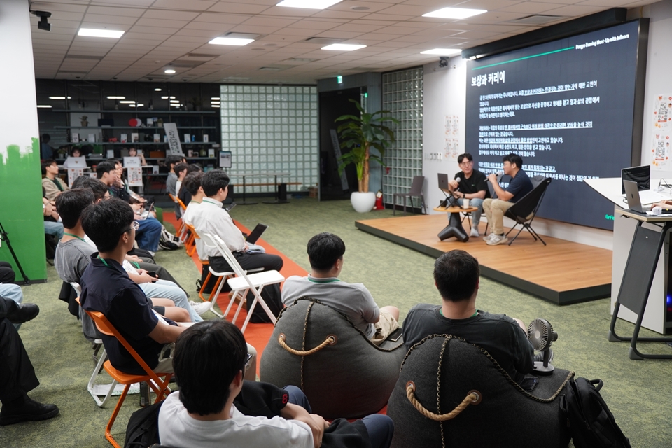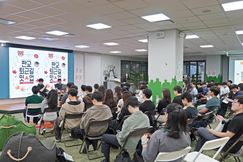 This edition, themed ‘8th Evening Meet-Up: Autumn Special,’ focused on young developers and garnered significant attention in the IT sector. Collaborating with the online IT learning platform Infralab, the event welcomed about 100 participants. IT practitioners delivered presentations and engaged in Q&A sessions, offering practical insights into the industry. Notably, the event featured special appearances by Dong-wook Lee and Joo-hyun Lee, CTOs from the popular YouTube channel ‘DevBadak,’ which boasts 40,000 subscribers. They shared valuable advice for young developers.