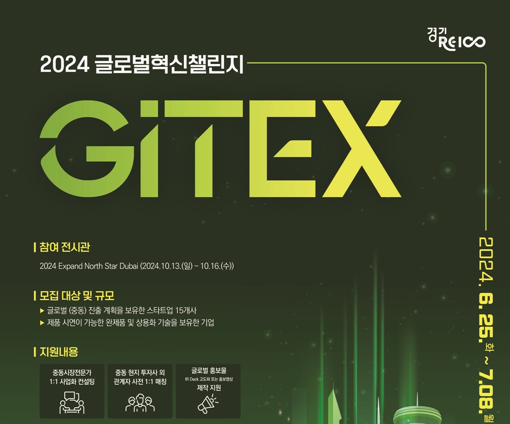 Gyeonggi Center for Creative Economy & Innovation (GCCEI) (Director Won-kyung Kim) is set to support its incubated startups at the ‘2024 GITEX,’ which will take place from October 13 to 16 in Dubai, UAE. The center aims to showcase those startups’ innovations on a global stage.