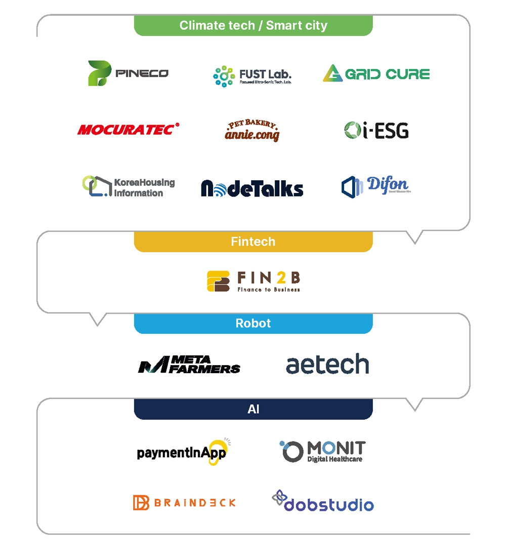 These companies were identified through GCCEI’s initiatives, including the Gyeonggi Climate Tech Startup Incubation Program (Gyeonggi Province), the Global Hub Program (Ministry of SMEs and Startups), and the Startup Leap Package (Ministry of SMEs and Startups).