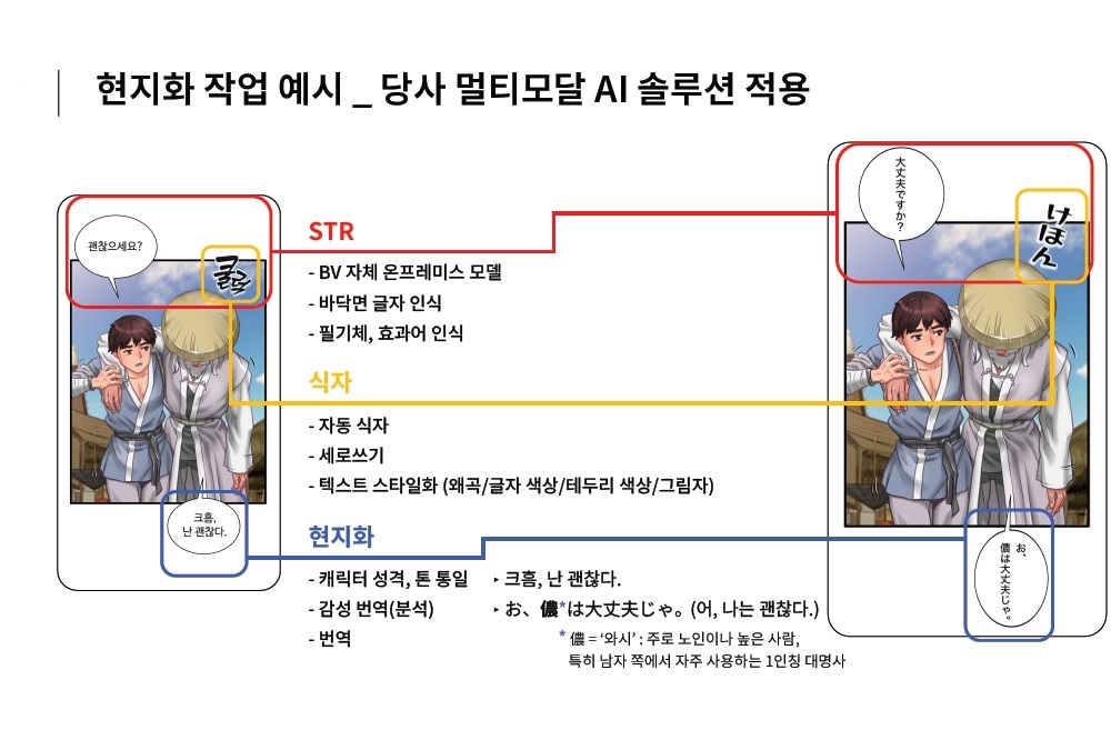 Mechanism Examples of BrainVentures’s automated webtoon localization solution | Image provided by BrainVentures