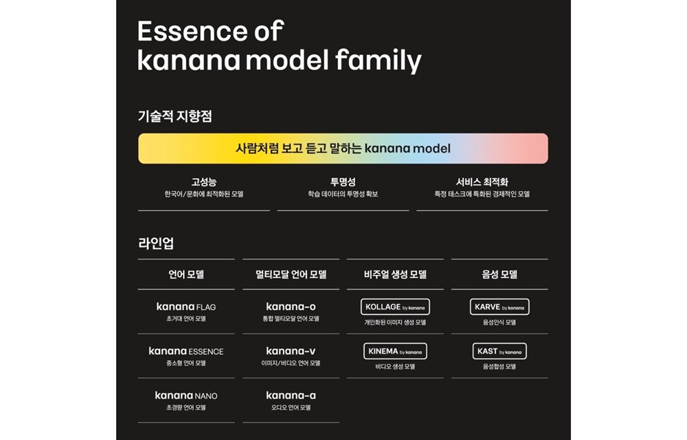 Kakao introduced its new unified AI brand, “Kanana,” with plans to use the models to launch AI services that provide practical value to users. Kakao noted that its “service-optimized LLM” (Large Language Model) should offer strong performance, cost-efficiency, and the ability to solve service-specific issues.