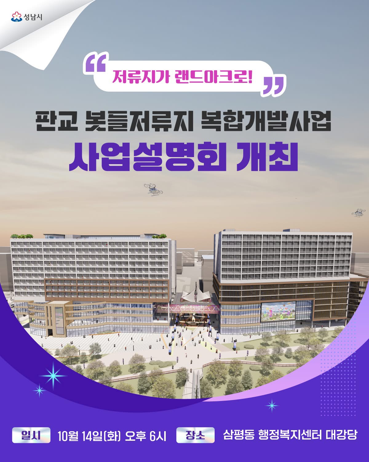 판교 봇들저류지 복합개발사업 사업설명회 개최(10/14)