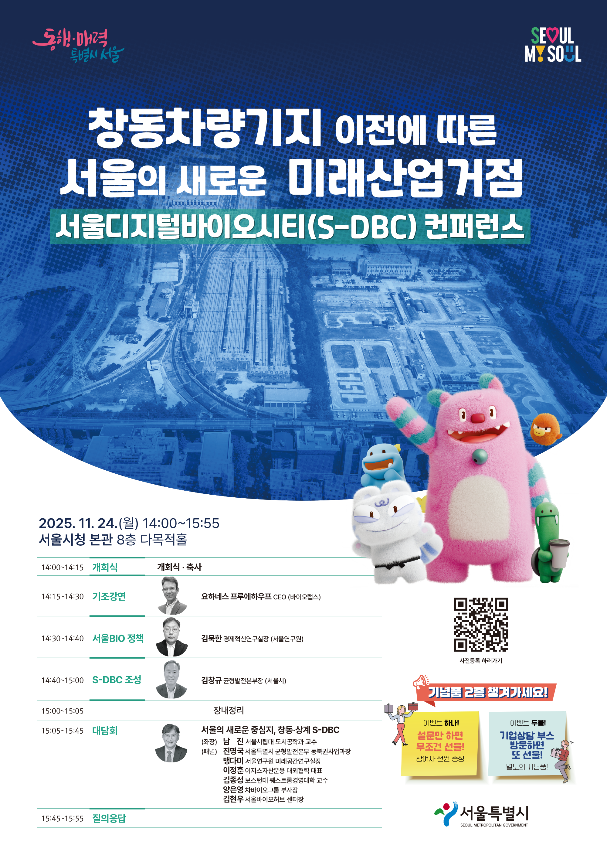공모 내용 표 제목 서울디지털바이오시티(S-DBS) 컨퍼런스 접수기간 2025-11-19 ~ 2025-11-24 사업기간 2025-11-19 ~ 2025-11-24 첨부파일 접수 목록