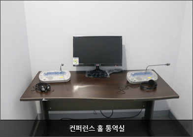 인터넷 : 유.무선 인터넷 연결 및 사용가능 영상장비 : 빔프로젝터, 스크린 음향장비 : 마이크, 동시통역MIC(3개국어), 동시통역수신기(30개), 마이크스탠드 사무시설 : 테이블, 의자 |